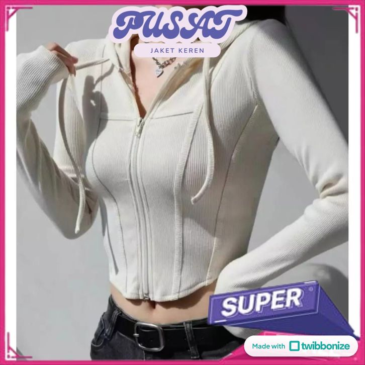 Premium Hoodie Crop Top Wanita Kekinian – Jaket Zipper High Quality Bahan Adem | Korean Style Fashion Outfit OOTD Stylis