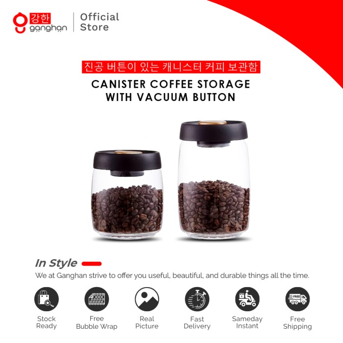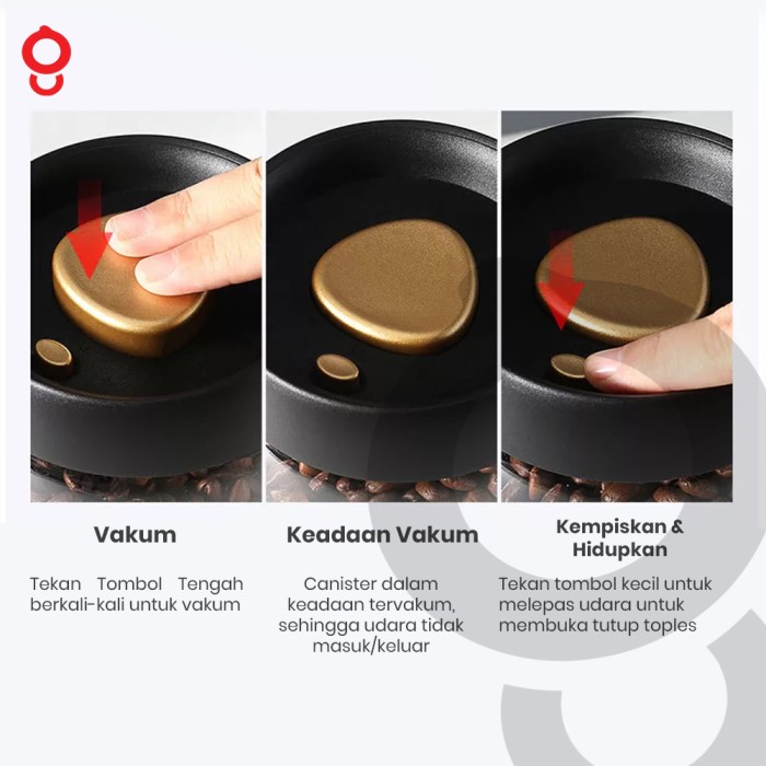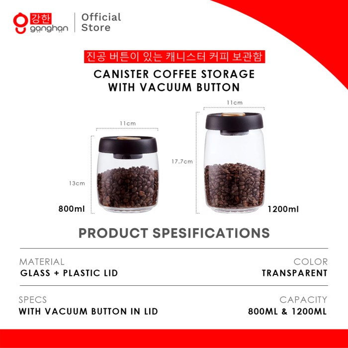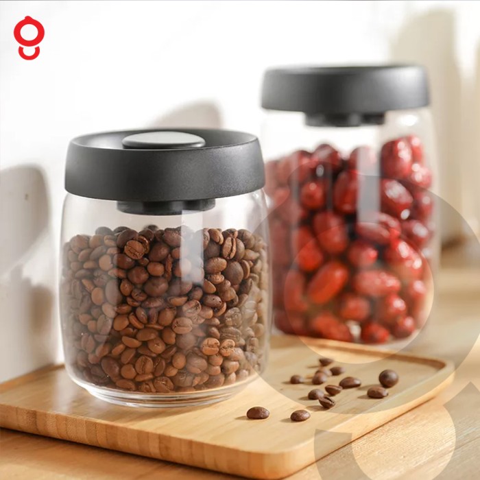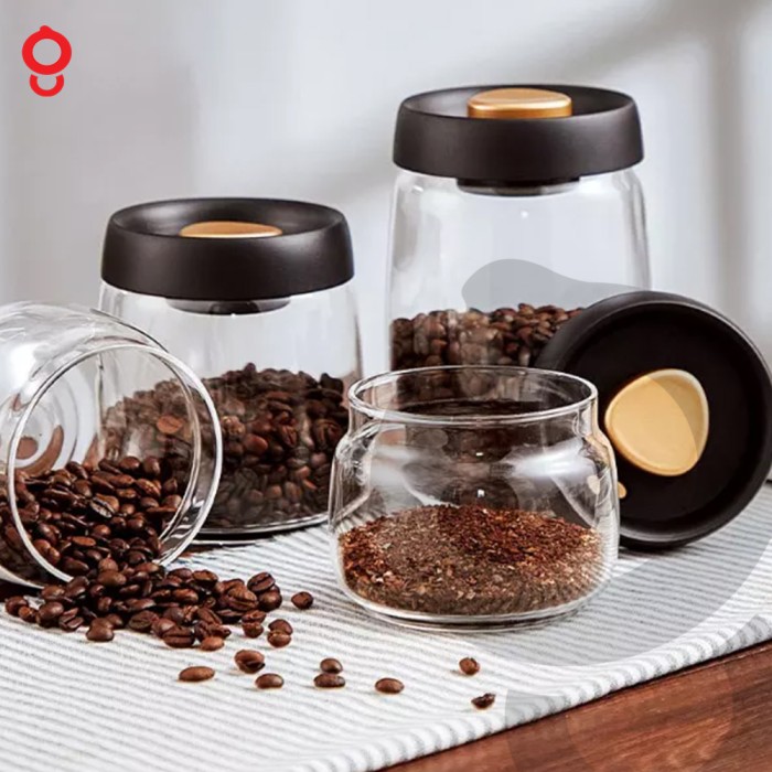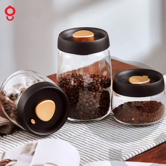 GANGHAN TOPLES KOPI KEDAP UDARA |COFFEE STORAGE JAR WITH VACUUM BUTTON - 800 ML