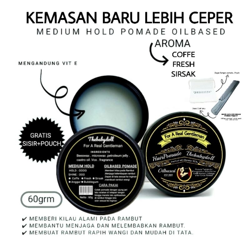 Pomade Oilbased Medium hold Aroma coffe berkualitas thebabydoll 60 gram