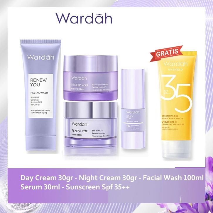 Wardah Paket Lengkap + Gratis Sunscreen SPF 35+++
