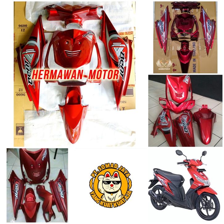 Full Cover Body Halus Kasar Honda BeaFull t Karbu Warna Merah Tahun 2008 2009 2010 2011 2012 + Stripping Full Body Halus