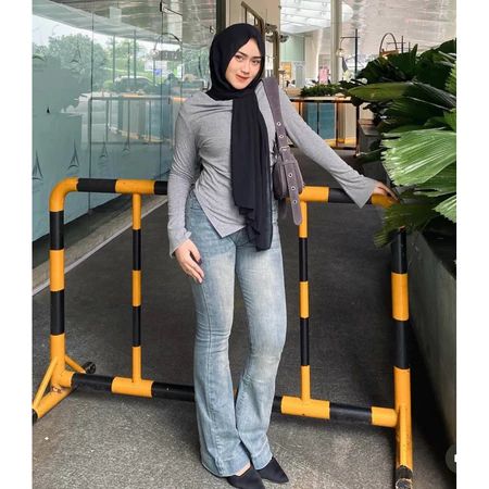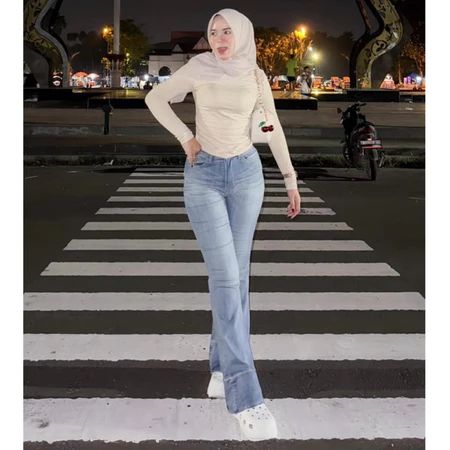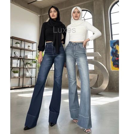 Luxes UltraHaigwaist Cutbray Streach Jeans Wanita Loose Vintage Retro