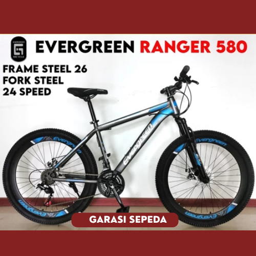 SEPEDA GUNUNG DEWASA EVERGREEN MTB 26 INCH RANGER 580 530 MECHANICAL DISC BRAKE 24 SPEED SEPEDA DEWASA PRIA WANITA MURAH