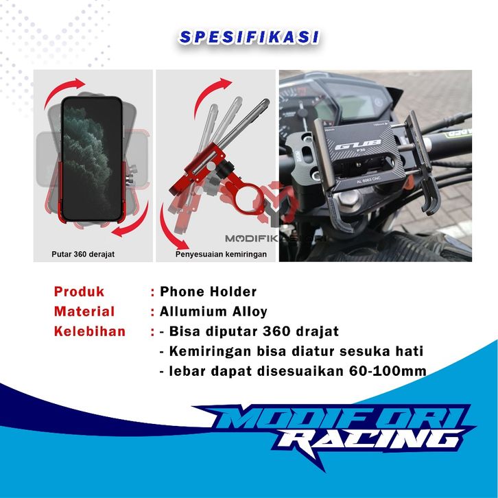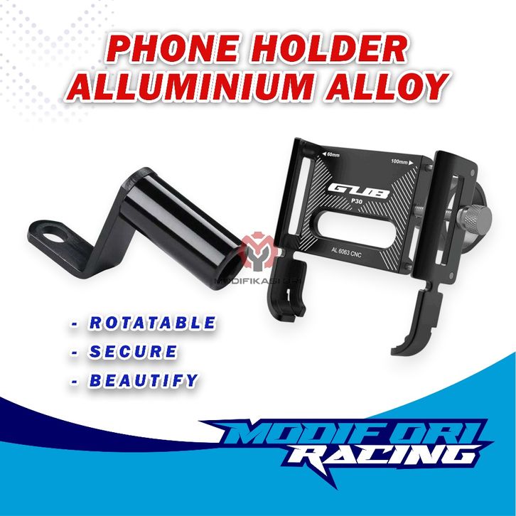 Holder HP Motor Dudukan Ponsel Aluminium Aloy GUB P30 Original Holder Handphone Motor