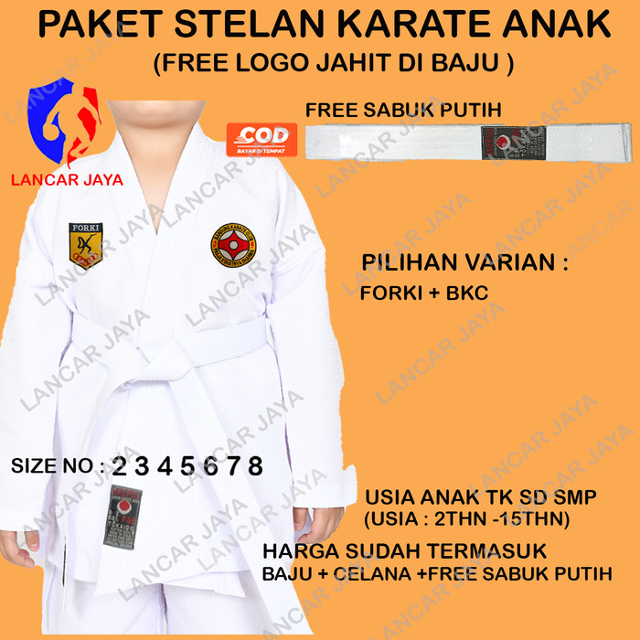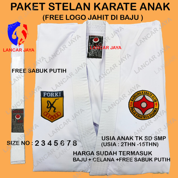 BAJU KARATE ANAK STELAN FREE LOGO BKC (BANDUNG KARATE CLUB )+SABUK - SIZE NO 2