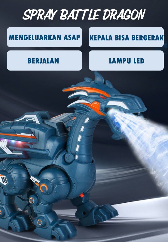 MAINAN ANAK ROBOT NAGA MENGELUARKAN ASAP SPRAY BATTLE DRAGON - BLACK