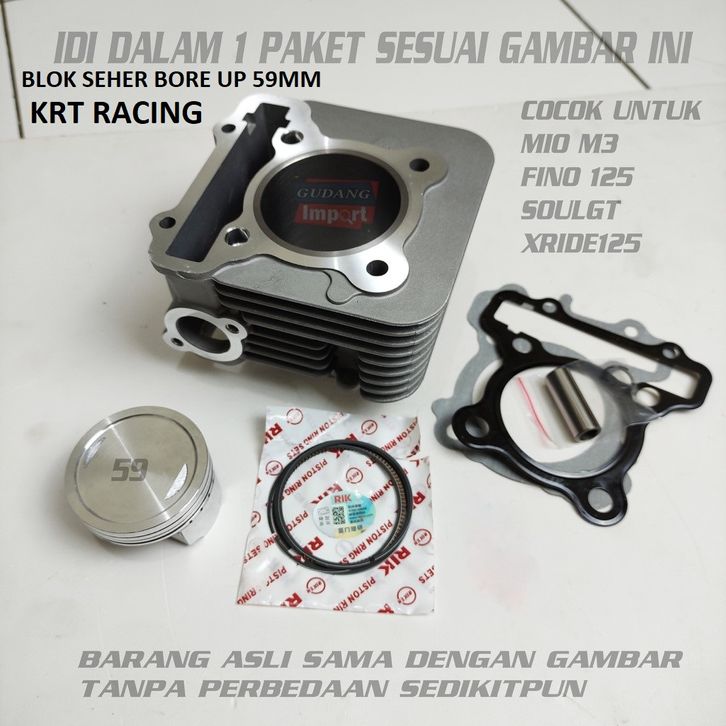 BLOK SEHER BORING BORE UP 59MM KBRT RACING MIO M3 SOUL GT FINO XRIDE 125 BLOCK SILINDER SET PISTON YAMAHA 2PH 59 58 58MM