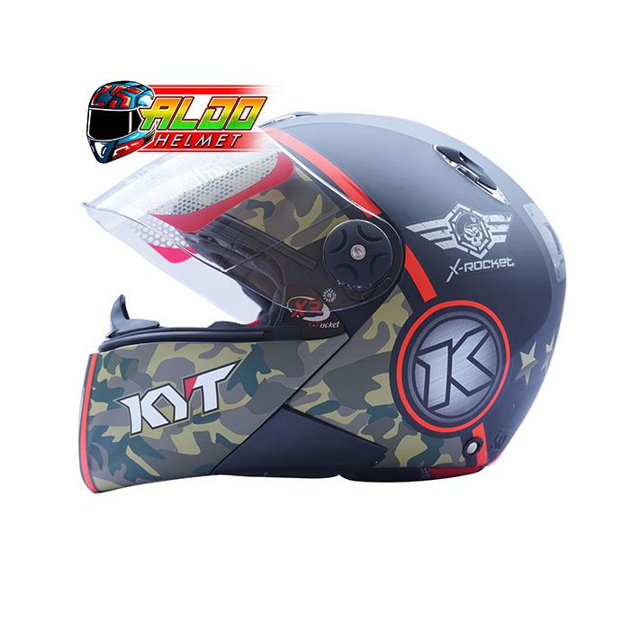 HELM KYT ORIGINAL / KYT X-ROKET /HELM KYT FULL FACE MOTIF #3 BLACK DOFF GREEN RED FLUO/ HELM SNI & DOT