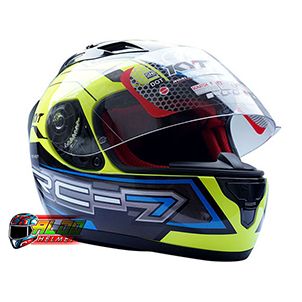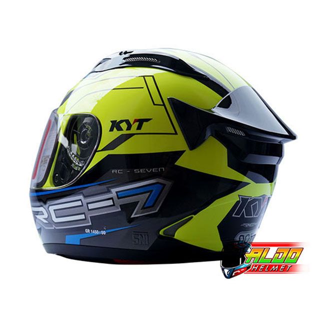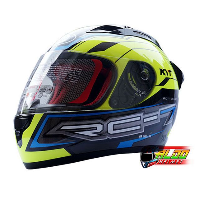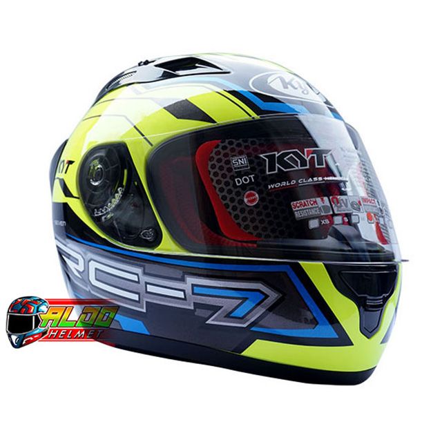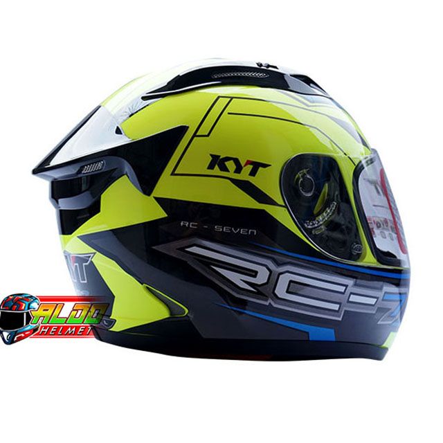 HELM KYT ORIGINAL / KYT RC-7 /HELM KYT FULL FACE MOTIF #14 YELLOE FLUO BLACK BLUE KACA BIASA/ HELM SNI & DOT