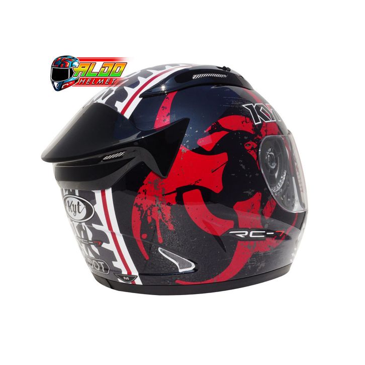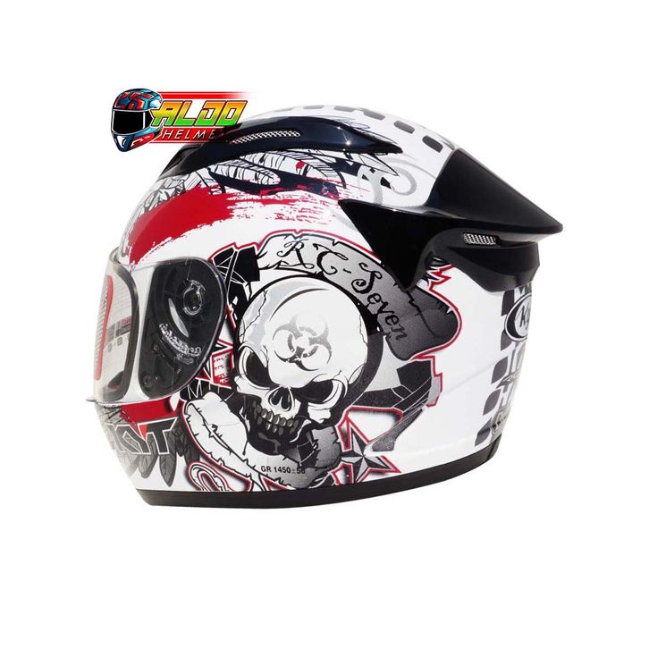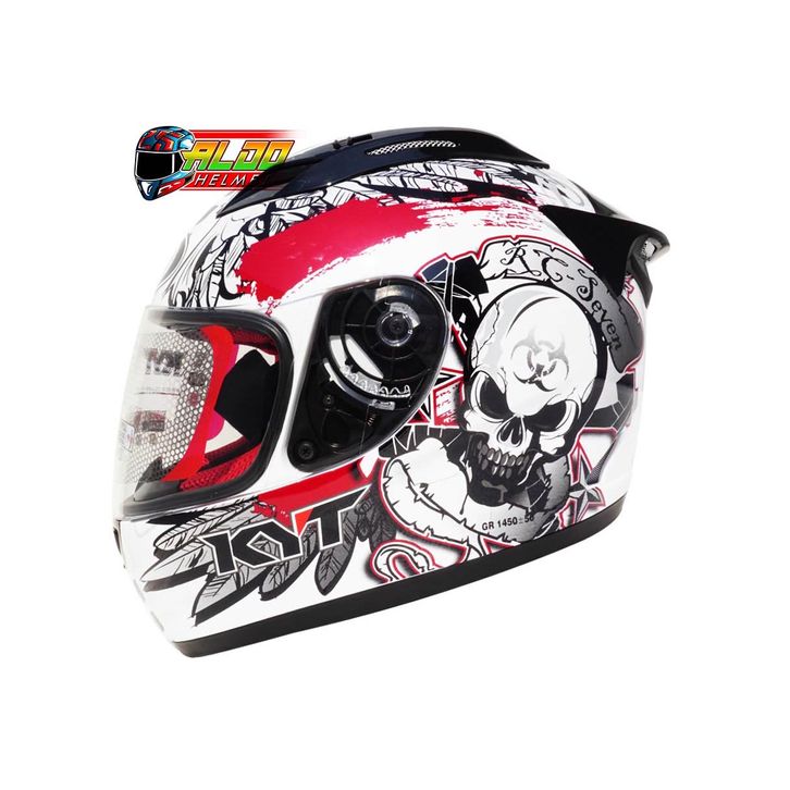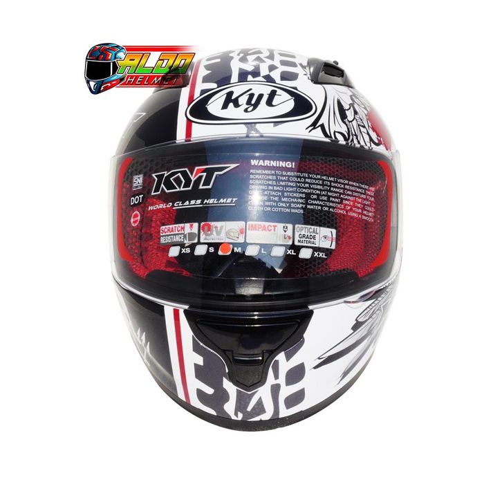 HELM KYT ORIGINAL / KYT RC-7 /HELM KYT FULL FACE MOTIF #13 WHITE BLACK RED KACA BIASA/ HELM SNI & DOT