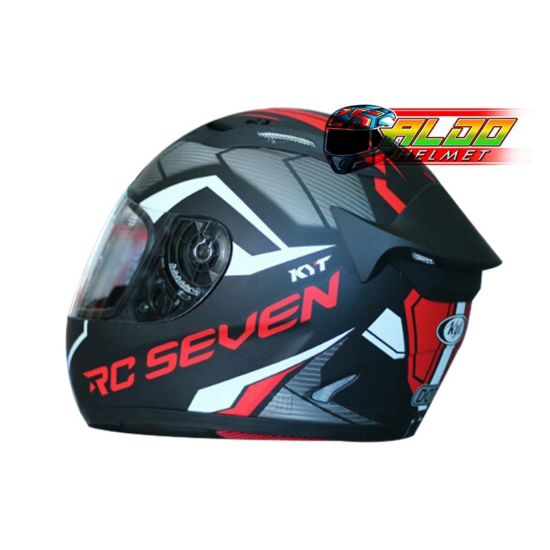 HELM KYT ORIGINAL / KYT RC-7 /HELM KYT FULL FACE MOTIF #18 MATT BLACK RED KACA BIASA/ HELM SNI & DOT