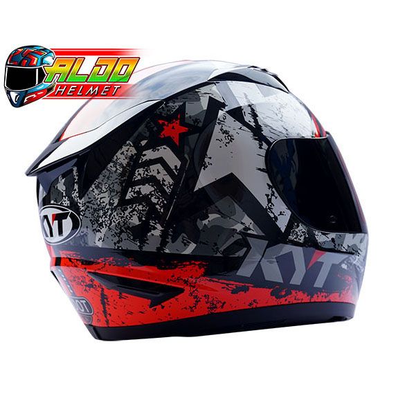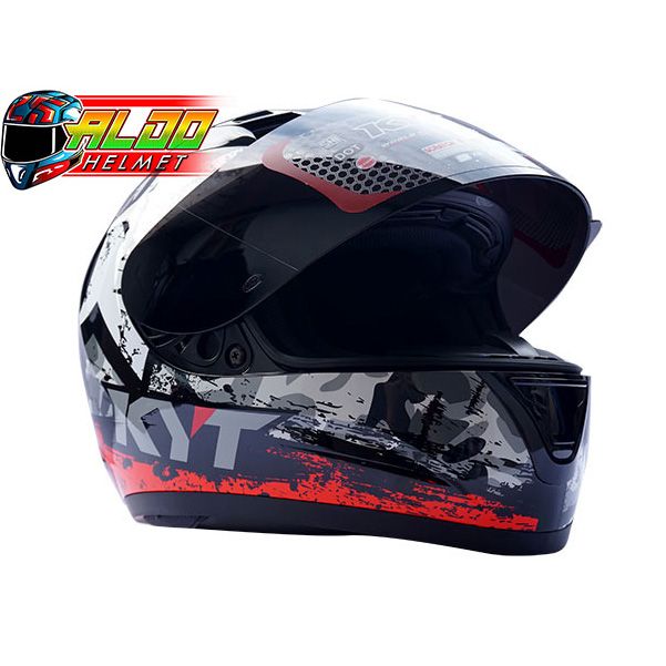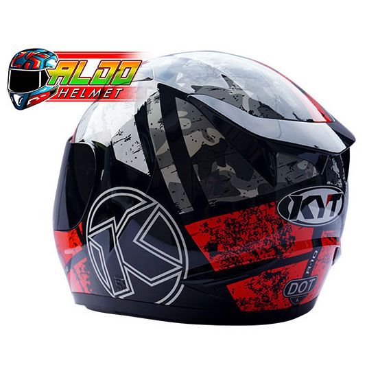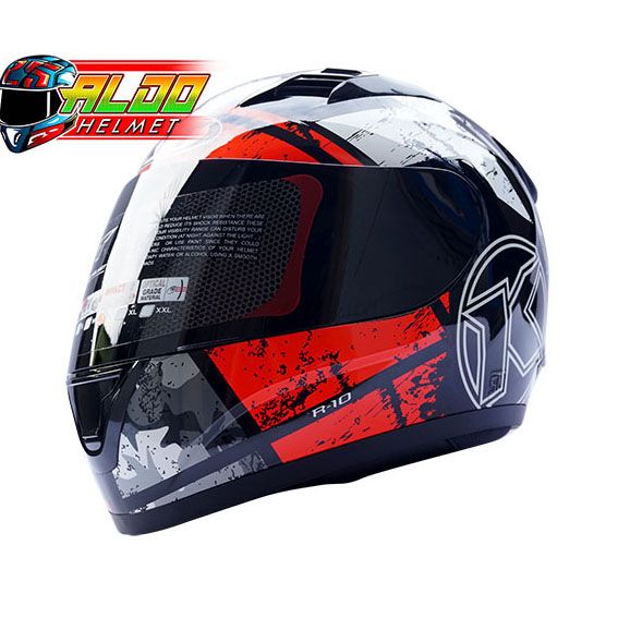 HELM KYT ORIGINAL / KYT R-10 /HELM KYT FULL FACE MOTIF#3 BLACK WHITE RED FLUO KACA BIASA/ HELM SNI & DOT