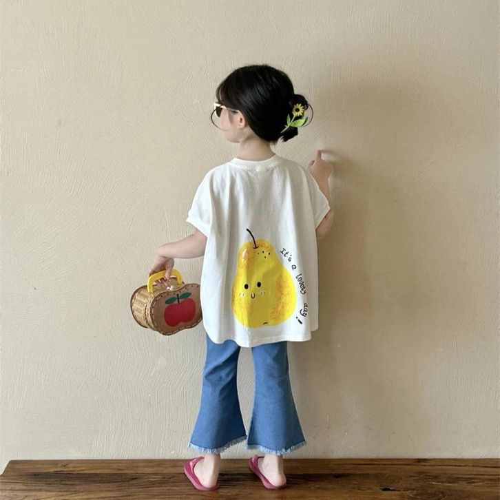 2-10Tahun Setelan denim kaos oversize pear baju anak perempuan cantik ootd putih jeans