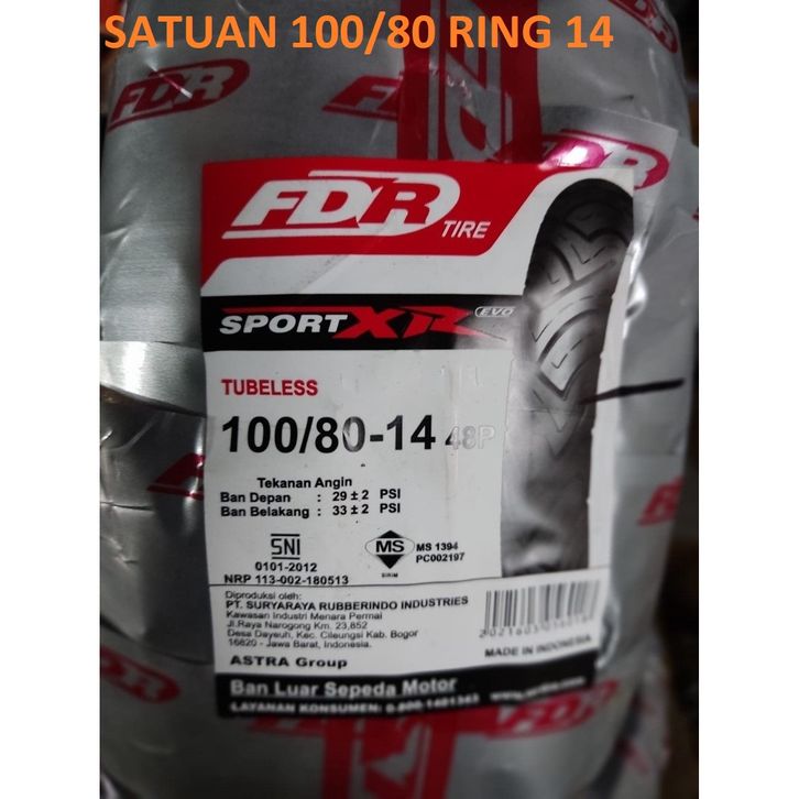 SEPASANG & SATUAN BAN TUBELESS FSEPDR SPORT XR EVO 90/80 100/80 RING 14 ALL MOTOR MATIC BEAT MIO SCOOPY TUBLES 80 90 100