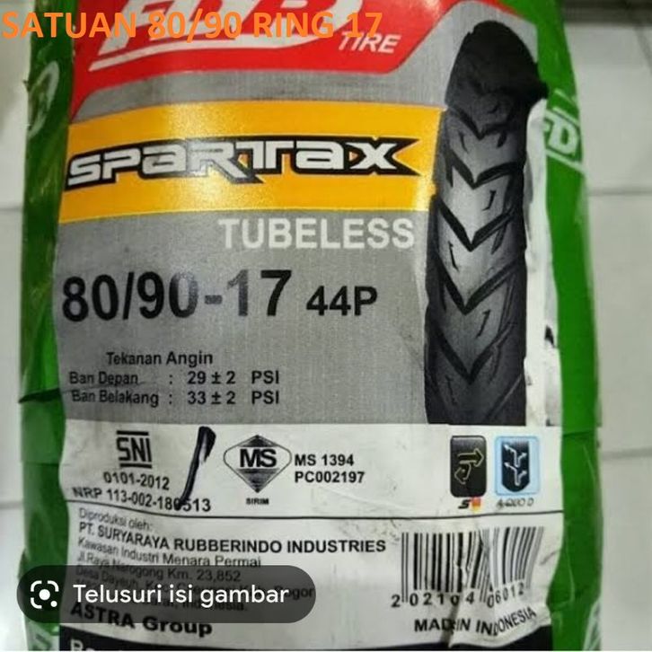BAN TUBLES FDR SPARTAX RING 17 70BAN TUBLES F/90 80/90 ORIGINAL TUBELESS MOTOR BEBEK HONDA YAMAHA SUZUKI UKURAN 70 80 90