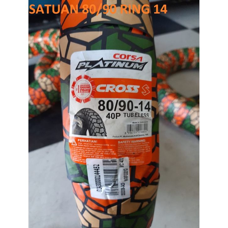 BAN TUBELESS CORSA PLATINUM CROBSS S 80/90 90/80 90/90 100/80 RING 14 MOTOR MATIC BEAT MIO VARIO TUBLES KORSA CROS 80 90