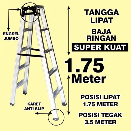 Tangga Lipat Super Kuat Spesial Engsel Jumbo / 2 Meter / 1,75 meter Bahan Baja
