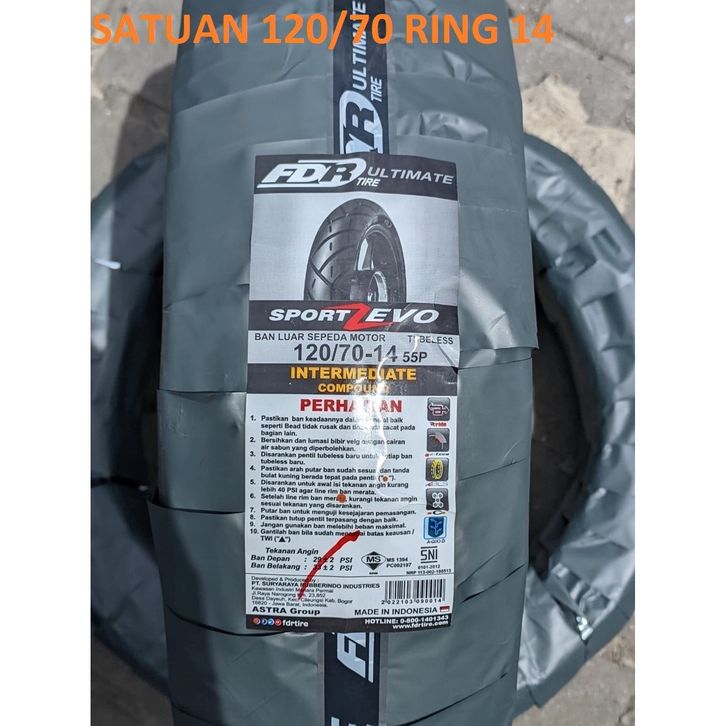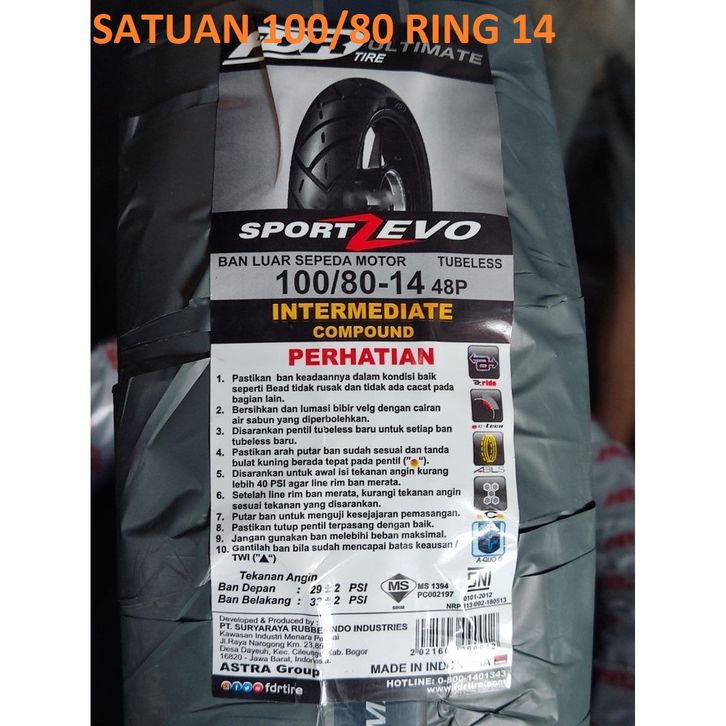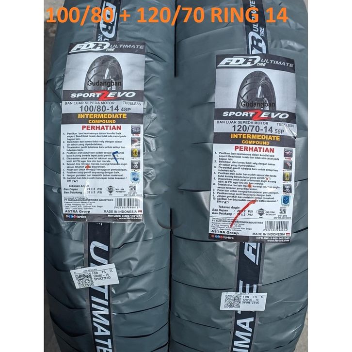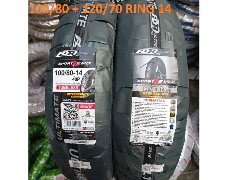 SEPASANG & SATUAN BAN TUBLES FDR SPORT ZEVO 100/80 120/70 RING 14 MOTOR VARIO 150 PCX ORIGINAL TUBELESS MATIC 80 100 120