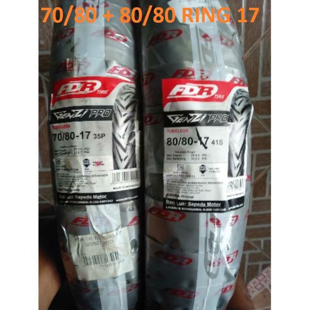 SEPASANG & SATUAN BAN TUBLES FDR GENZI PRO RING 17 70/80 80/80 90/80 100/80 MOTOR BEBEK /CBR NINJA VIXION TUBELESS 80 90