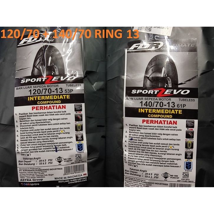 SEPASANG & SATUAN BAN TUBLES FDRSE SPORT ZEVO 120/70 140/70 RING 13 MOTOR NMAX ORIGINAL TUBELESS 70 120 140 YAMAHA N MAX