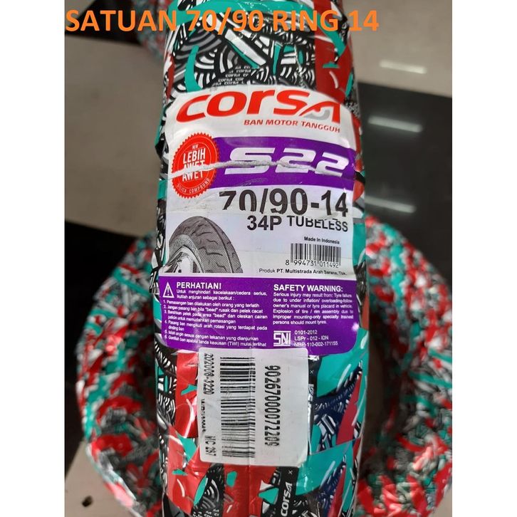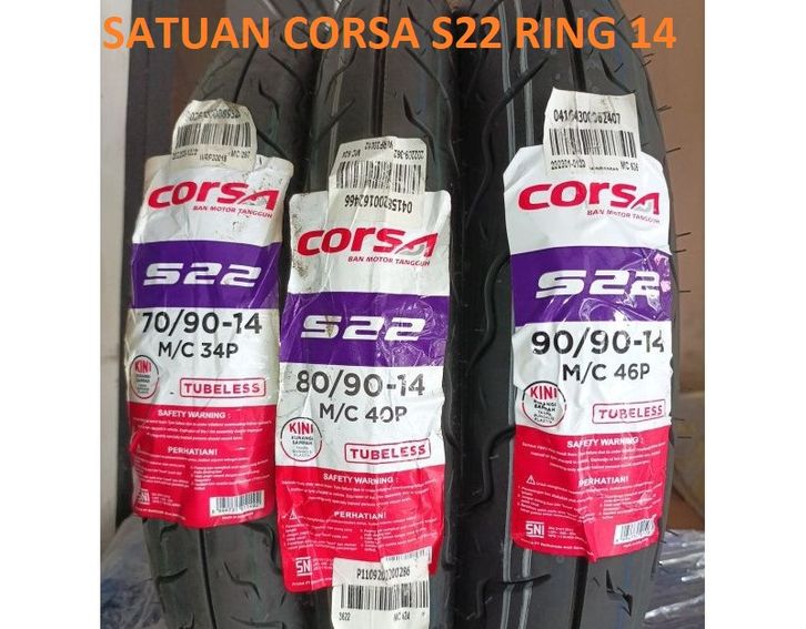 SEPASANG & SATUAN BAN TUBLES COSERSA S22 70/90 80/90 RING 14 MOTOR MATIC BEAT MIO VARIO ORIGINAL TUBELESS KORSA 70 80 90