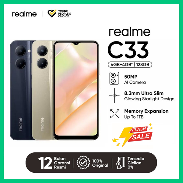 HP REALME C33 4/128GB GARANSI RESMI Unisoc T612 Processor 5000mAh Massive Battery 50MP AI Camera