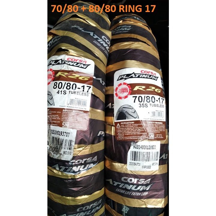 SEPASANG & SATUAN BAN TUBELESS CSORSA PALTINUM R26 70/80 80/80 RING 17 MOTOR BEBEK NINJA CBR ORIGINAL TUBLES KORSA 70 80