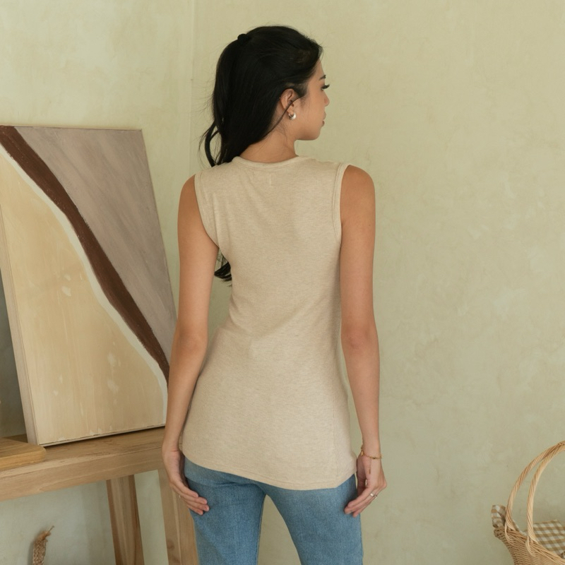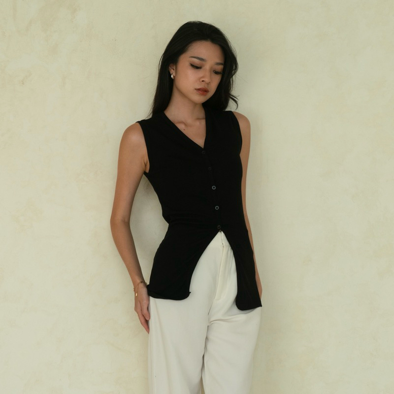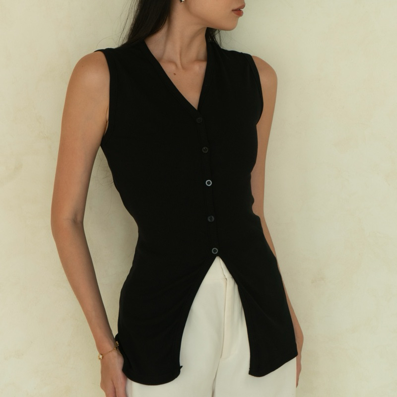 EMMA T0P | ROOHA | Atasan Rib Knit Wanita Basic Tank Top Button Up Top