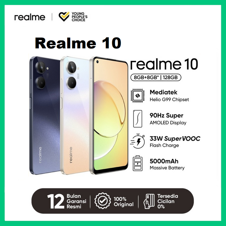 Top Selle Cicilan | REALME 10 RAM 8 + 128GB GARANSI RESMI 90Hz Super AMOLED Display 33W SUPERVOOC Charge 50MP AI Camera