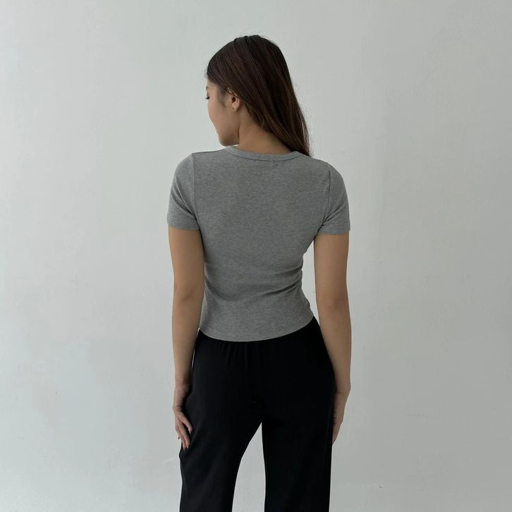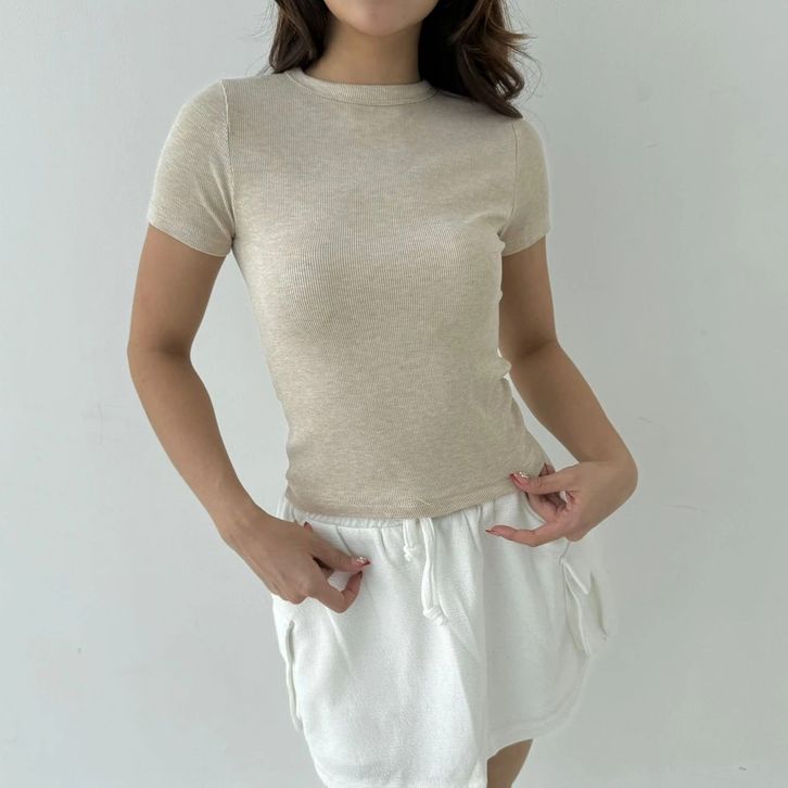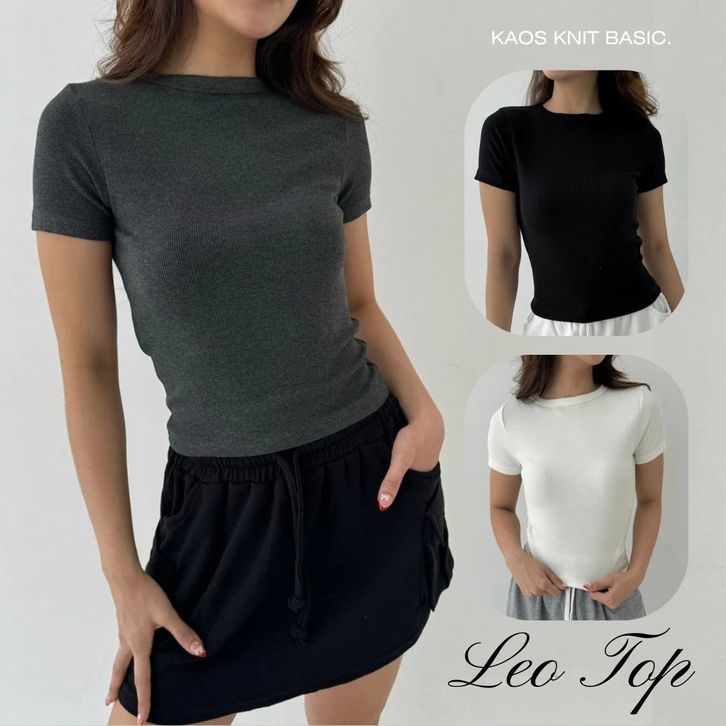 LEO TOP | Atasan Knit Wanita Korean Top Baju Knit Wanita Lengan Pendek Basic Short Sleeve