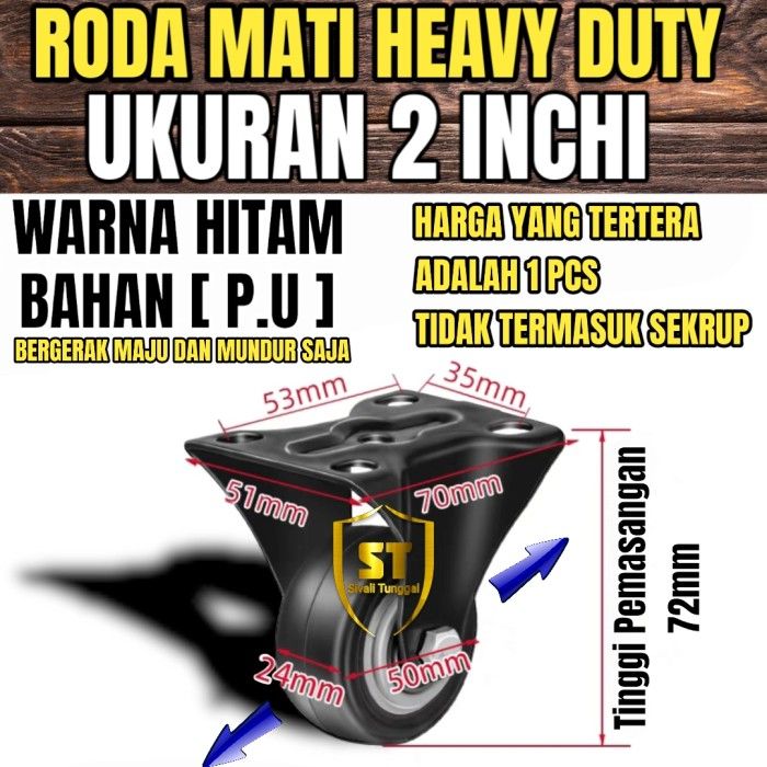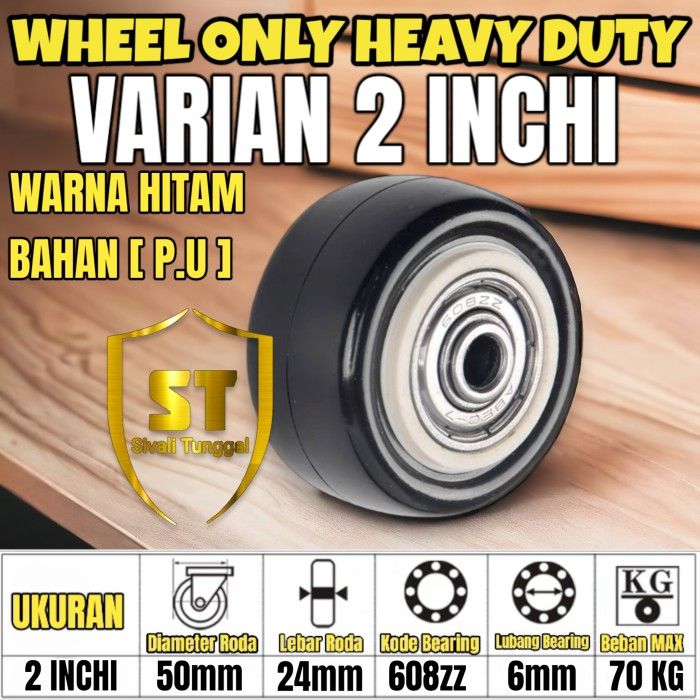 RODA TROLI 2" INCH HEAVY DUTY HITAM PU PVC + BEARING - RODA CASTER - WHEEL ONLY