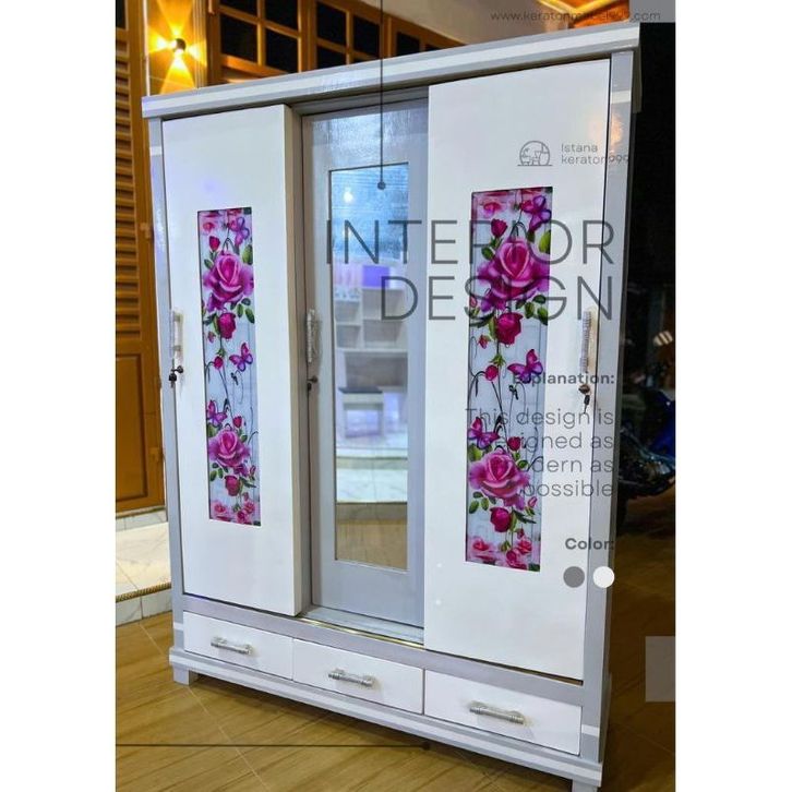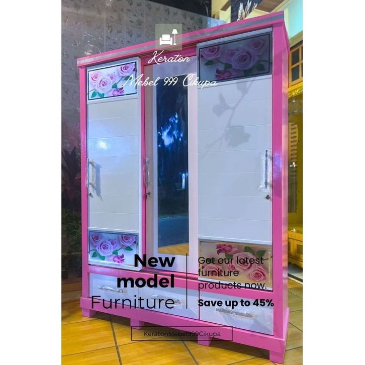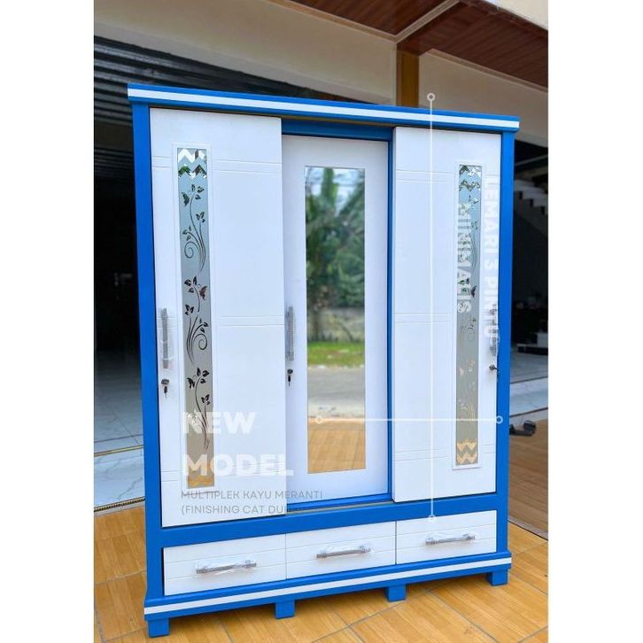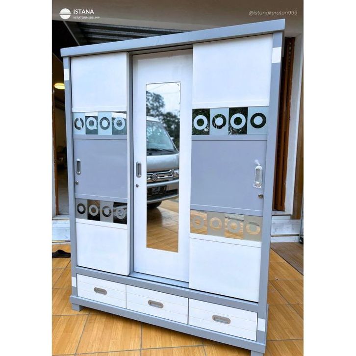 lemari baju sleding 3 pintu kayu cat duco keraton mebel