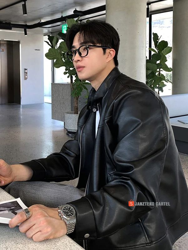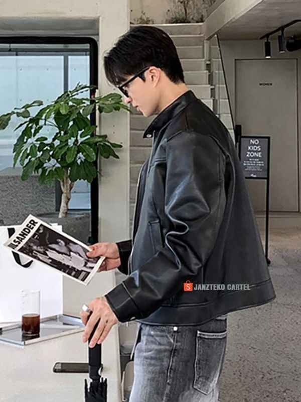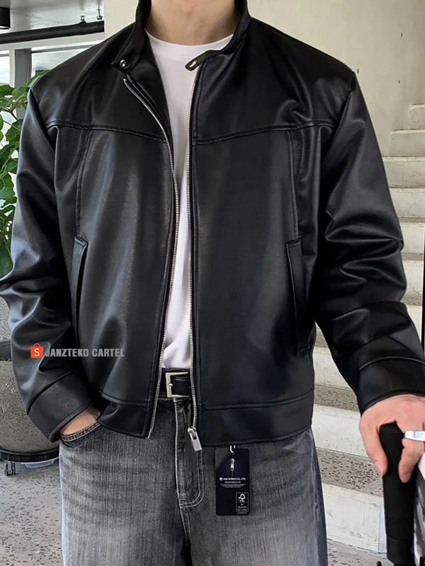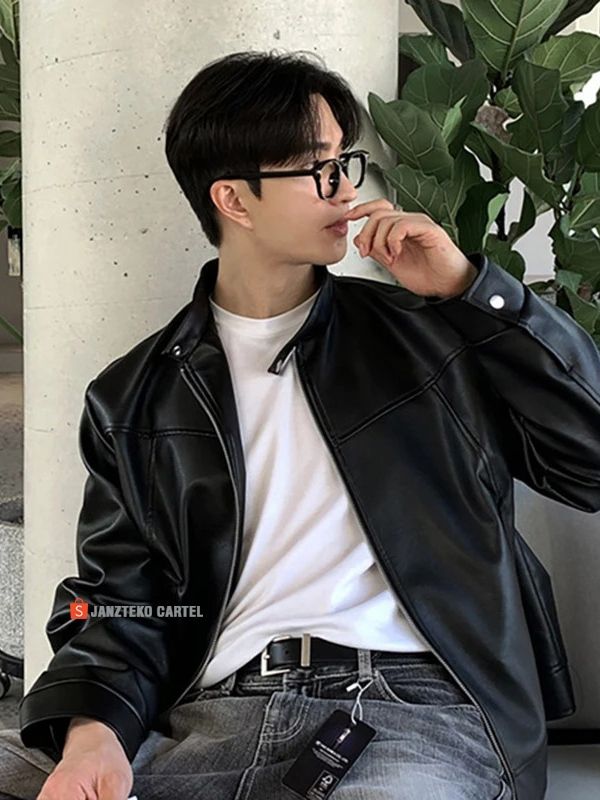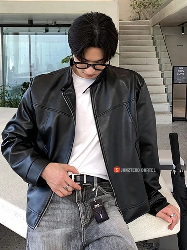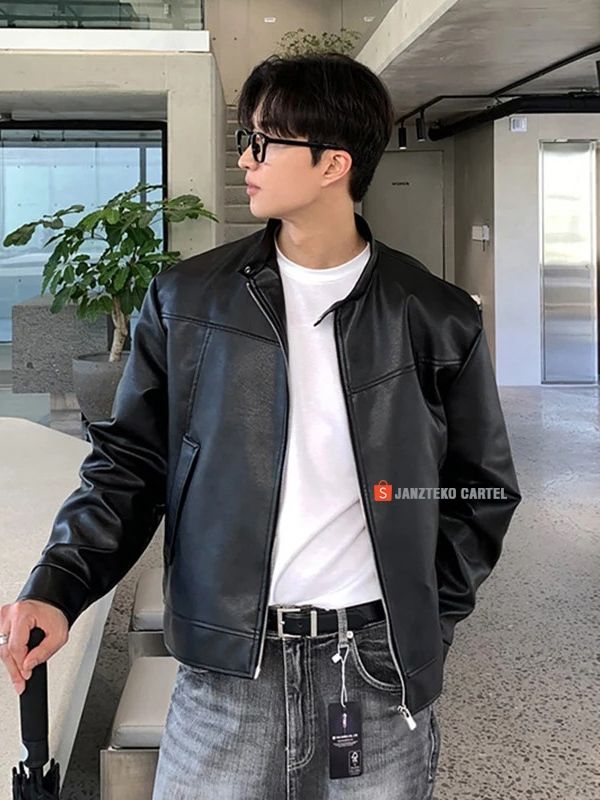 Jaket Pria Crop Top Boxy Kulit Sintetis Classic Vintage Granger Zipper Leather Casual JNK x BORNEO