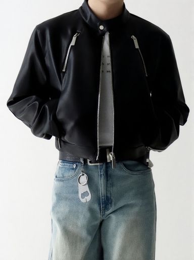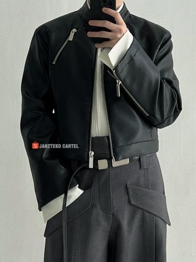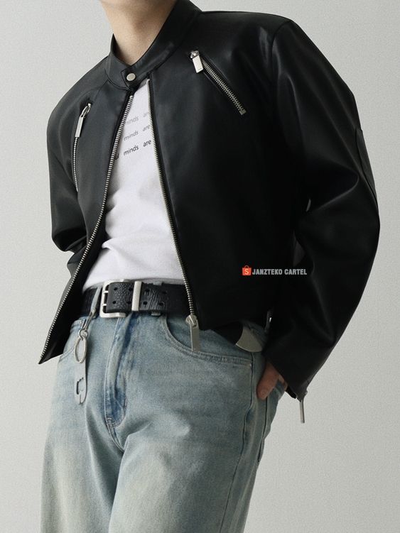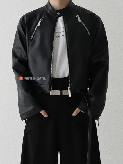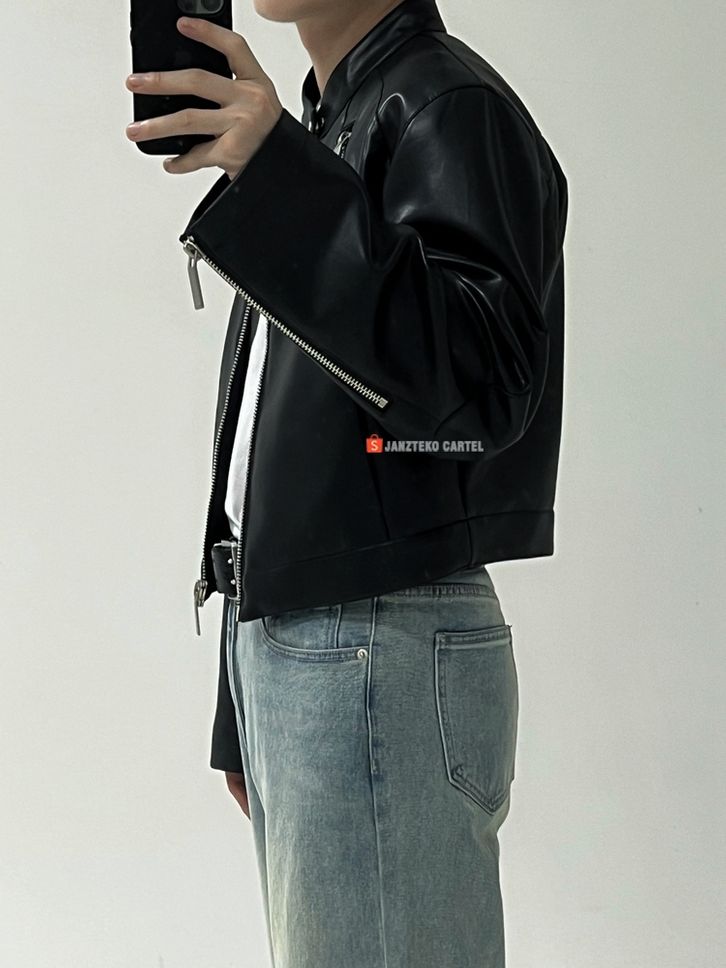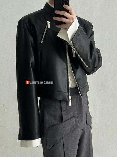 Jaket Crop Boxy Pria Granger Mafia Semi Kulit Sintetis Viena PU Leather Jacket Vintage Midnight Collar Classic Top Style