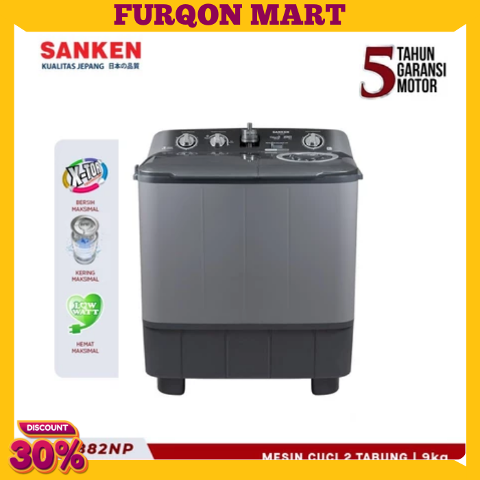 Mesin Cuci SANKEN 2 Tabung TW-882NP 9Kg Hitam - FREE ONGKIR -TANPA DP