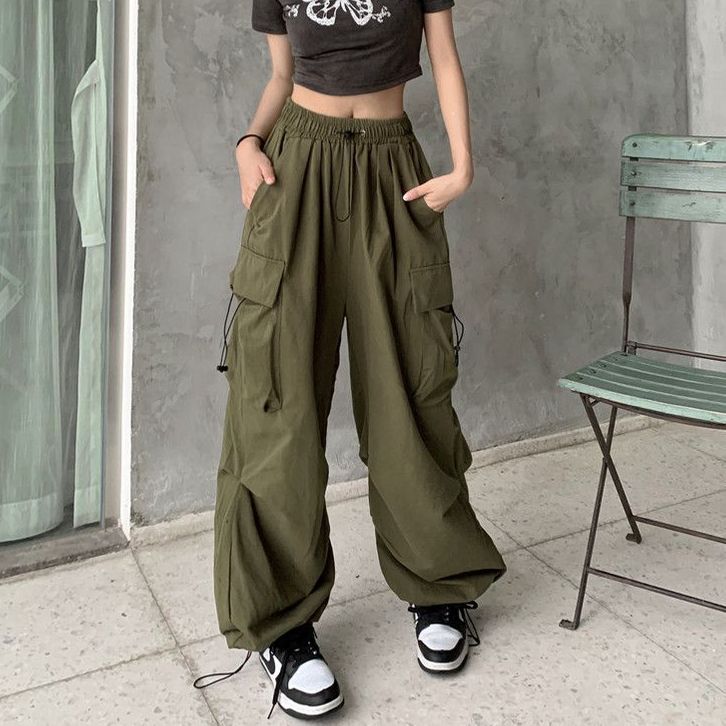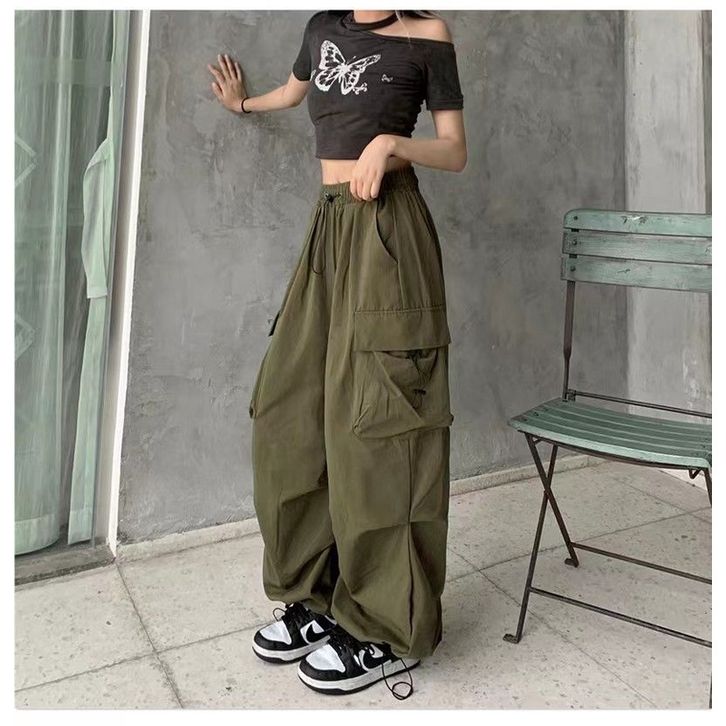 Celana Kargo Gaya Jalanan Wanita Highwaist Celana Panjang Saku Bigsize Celana Polos Cewe Kulot Cargo Kasual
