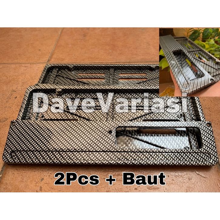 DISCON SIAP KIRIM DUDUKAN PLAT NOMOR MOTOR KARBON 2PCS+M + BAUT COVER PLAT NOMOR UNIVERSAL VARIO MIO SCOOPY BEAT NMAX PC