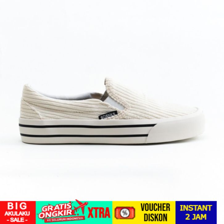 Sepatu Slip On Pria Wanita - Exelas Corduroy Broken White