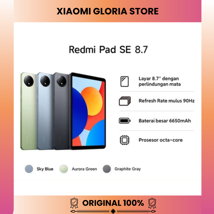 Xiaomi Redmi Pad SE 8.7 4/128GB Layar 8.7 Baterai 6650mAh Redmi Pad SE Redmi Pad Redmi Pad 2 Xiaomi Pad Xiaomi Pad 7