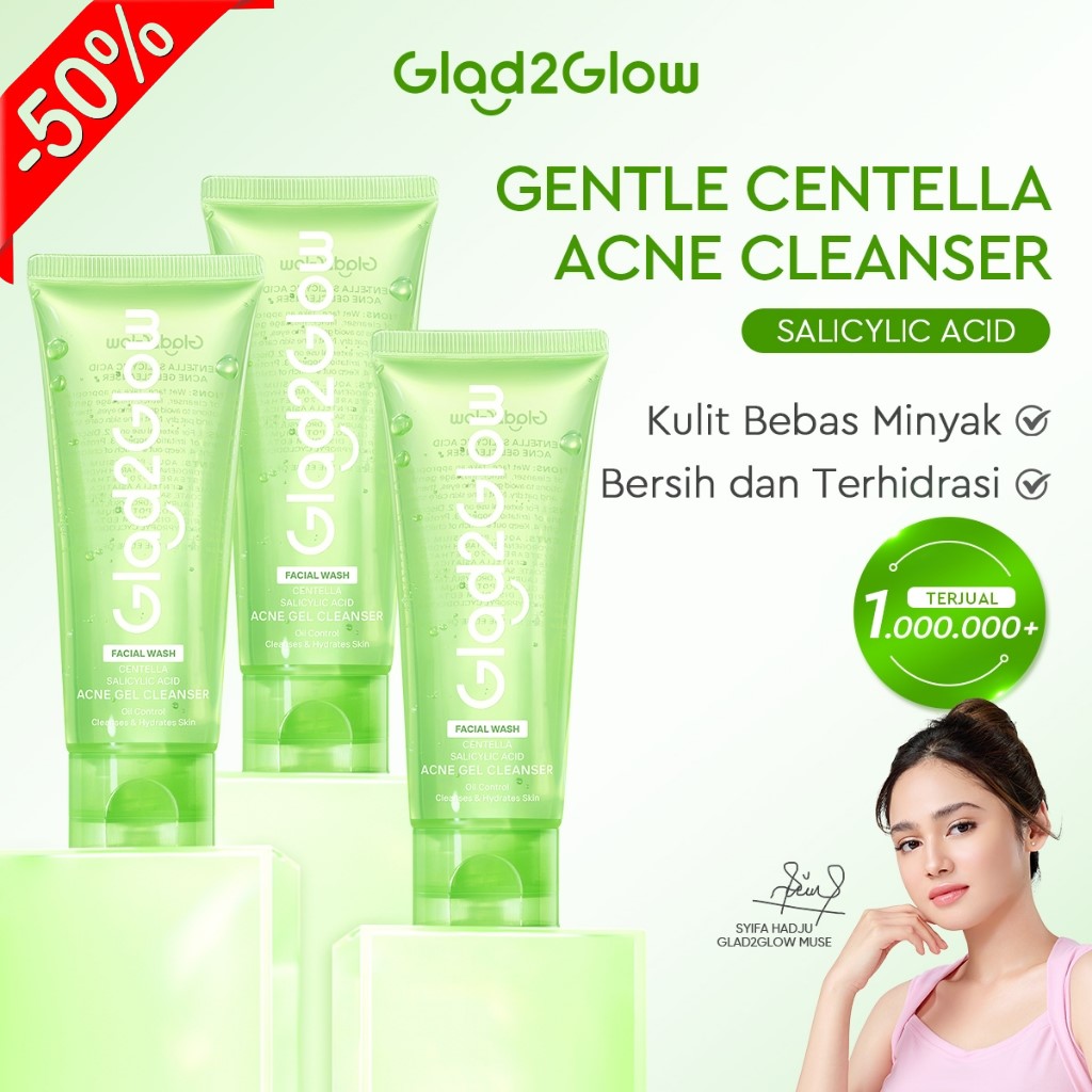 Glad2Glow Sepaket Glad 2 Glow Centella Salicylic Acid Acne Gel Cleanser 70ml Facial Wash Face Wash Jerawat Komedo