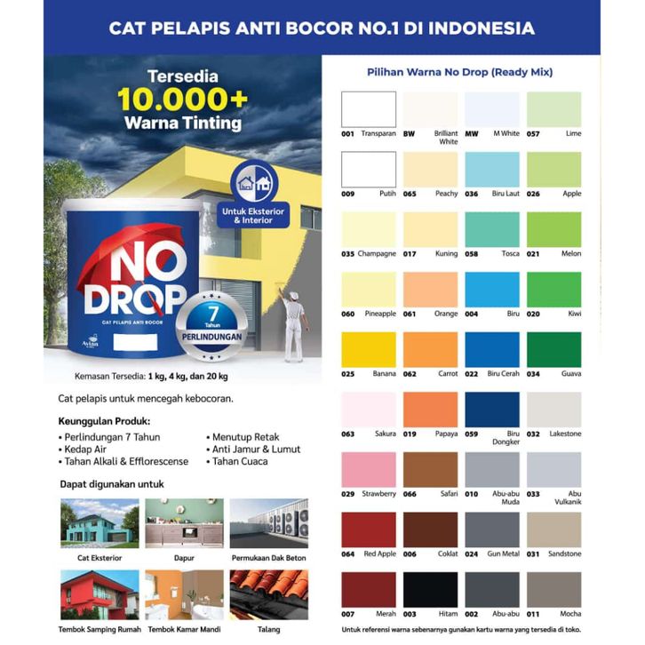 BW , MW 002 , ABU ABU TINTING, 009 PUTIH TINTING , 010 ABU MUDA TINTING, 003 HITAM , 004 BIRU , 006 COKLAT, 007 MERAH , 011 MOCHA , 017 KUNING, 019 PAPAYA , 020 KIWI , 021 MELON, 022 BIRU CERAH , 024 GUN METAL , 025 BANANA, 026 APPLE , 032 LAKESTONE , 033 ABU VULKANIK, 034 GUAVA , 035 CHAMPAGNE , 029 STRAWBERRY, 031 SANDSTONE , 065 PEACHY , 060 PINEAPPLE, 061 ORANGE , 057 LIME , 063 SAKURA, 062 CARROT , 058 TOSCA , 064 APPLE, 066 SAFARI , 059 BIRU DONGKER , 001 TRANSPARAN, 036 BIRU LAUT, New Color
