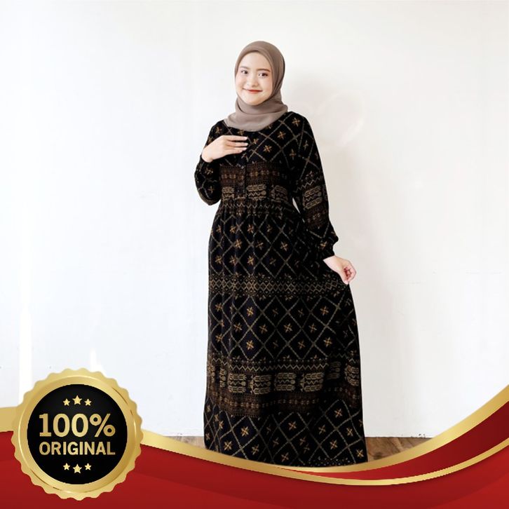 [Mall] Gamis Dewasa Homey Dress Andara Series by Dian Hijab Adem Nyaman - Etnik Black, L GRATIS ONGKIR