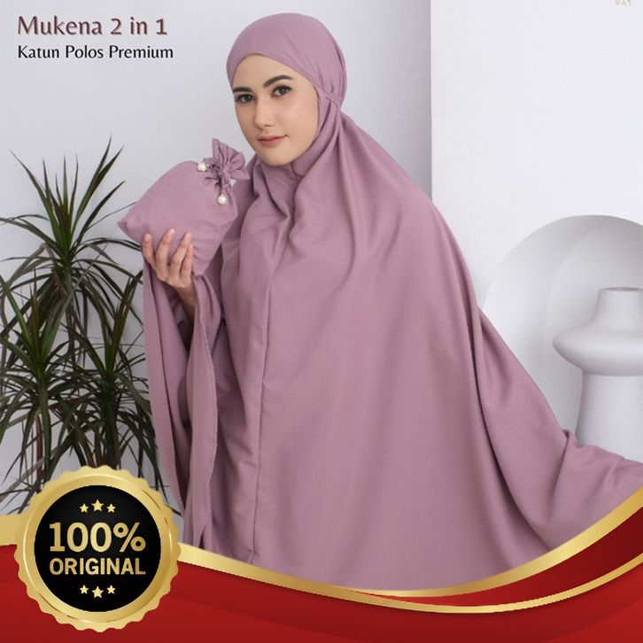 [Mall] Mukena Dewasa Traveling Mini Polos 2 in1 Resleting Katun Premium - Lavender GRATIS ONGKIR