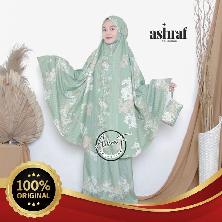 [Mall] Mukena Travel Mini Motif 2in1 Dewasa Bahan Katun Premium - SAGE GRATIS ONGKIR