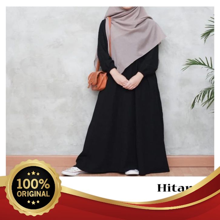 [Mall] Gamis Perempuan Dewasa Remaja Polos Kekinian Jumbo Hitam Putih Wanita - Hitam, M GRATIS ONGKIR