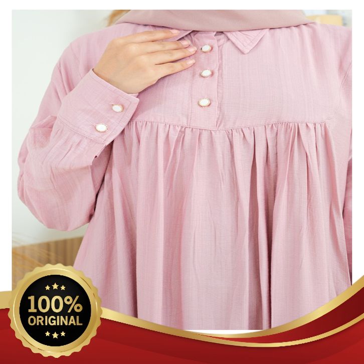 [Mall] Baju Gamis Polos Terbaru Katun Polo Linen Marwah Dress Exclusive - Nude GRATIS ONGKIR