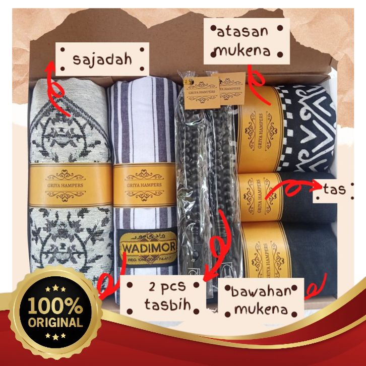[Mall] KADO NIKAH/ HAMPERS WEDDING/ PAKET SAJADAH+MUKENA+SARUNG - putih hitam GRATIS ONGKIR