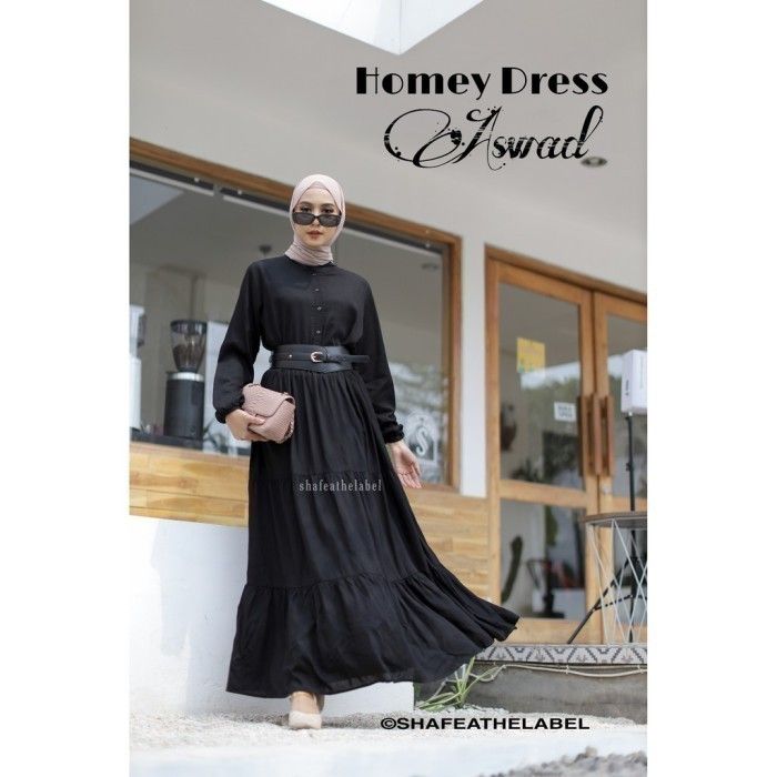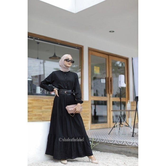 Dress Muslim Wanita Gamis Hitam Polos bahan katun - M GRATIS ONGKIR