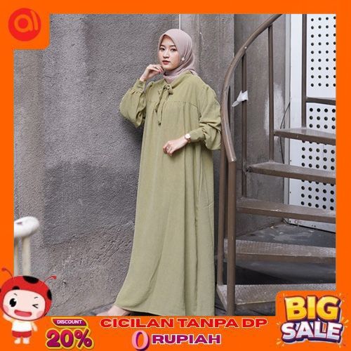 [Mall] Cotton Inch - Galisha Dress Gamis Busana Muslim Wanita - Olive, All Size GRATIS ONGKIR