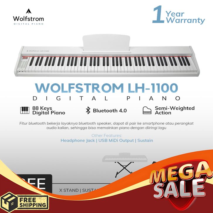 Wolfstrom LH-1100 Semi Weighted Keys Digital Piano Keyboard Elektrik